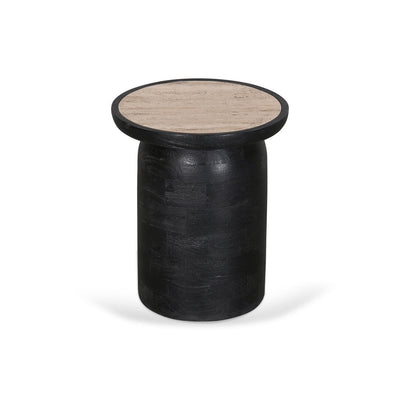 CST8734-RB 40cm Travertine Top Side Table - Black