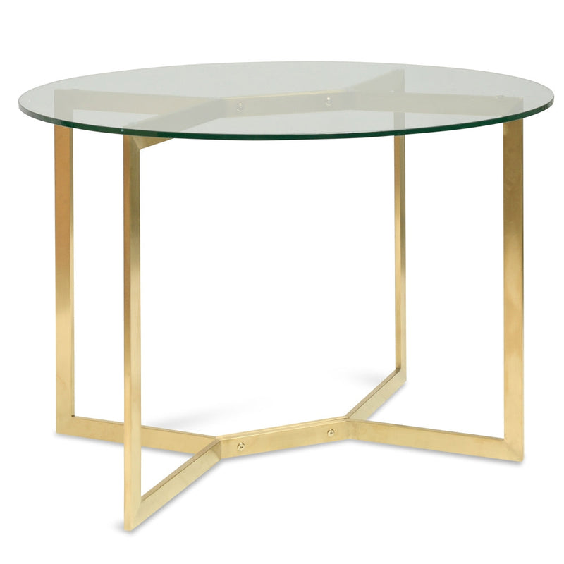 - Strong stainless steel legs and flat frame in a brushed gold finish