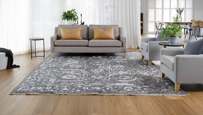 Beautifully hand crafted in Agra, India, this hand knotted wool and art silk rug will help you create a lush, relaxing yet moody space in your home.