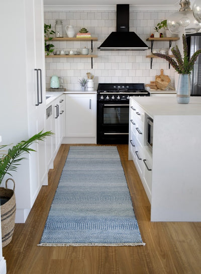 Beautiful wool and art silk rug, lovingly crafted and hand knotted in Agra, India. A splash of the most beautiful blue colour to accentuate any palette in the home.