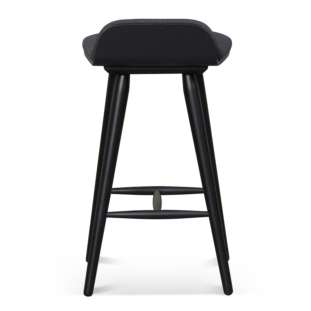 Description:Finn 65cm Wooden Bar Stool, showcases a sleek charcoal black finish and a modern silhouette for a truly elevated seating experience.